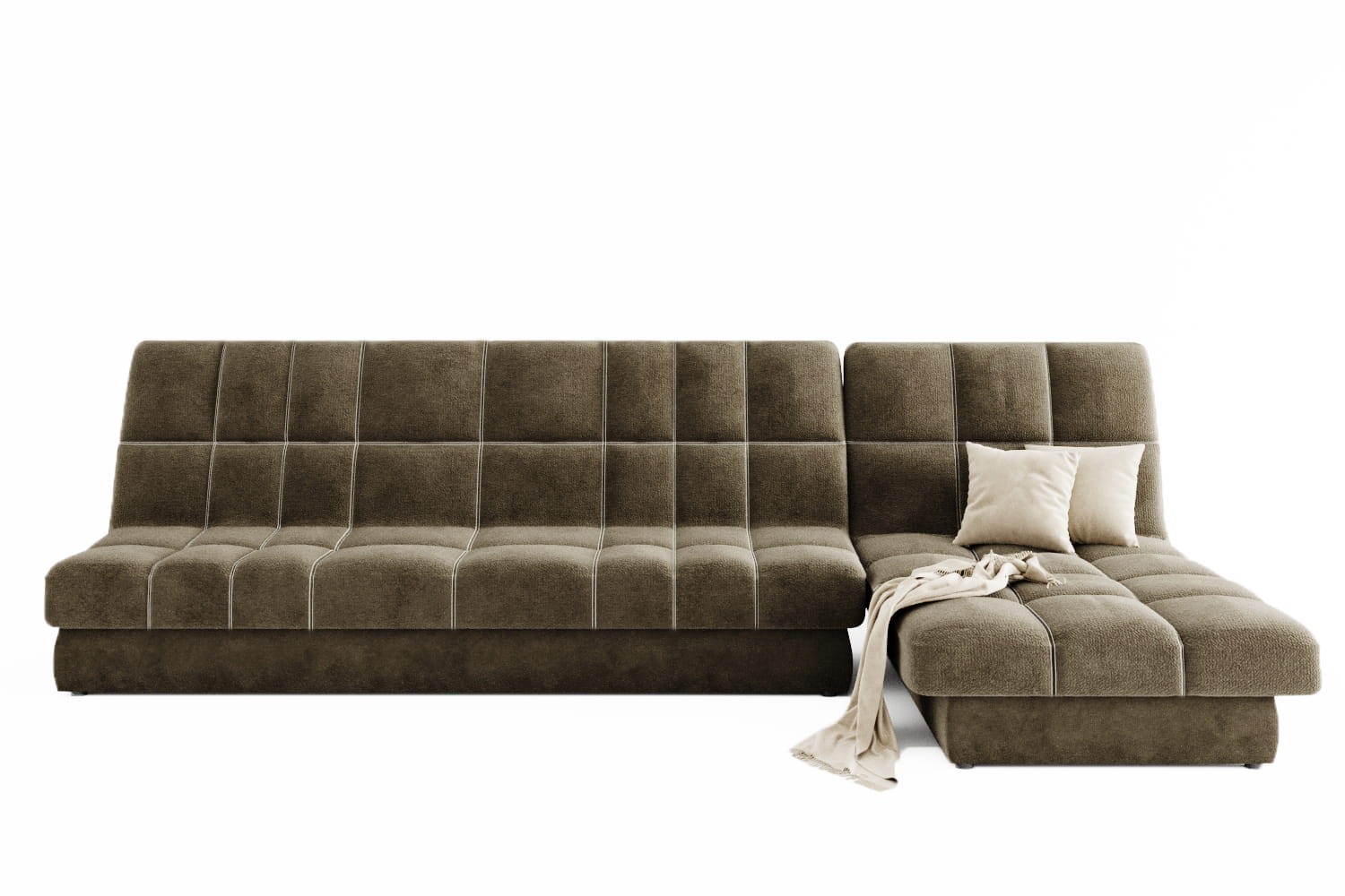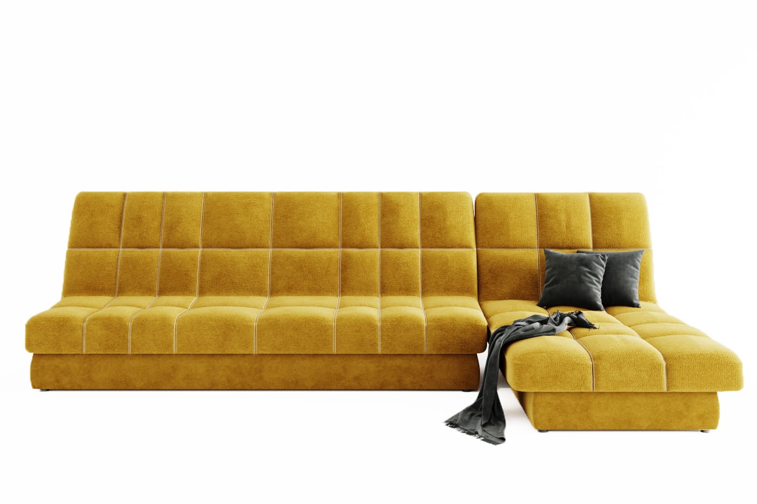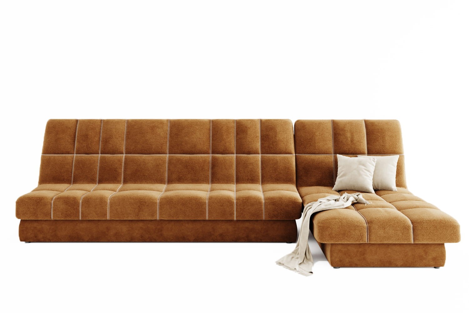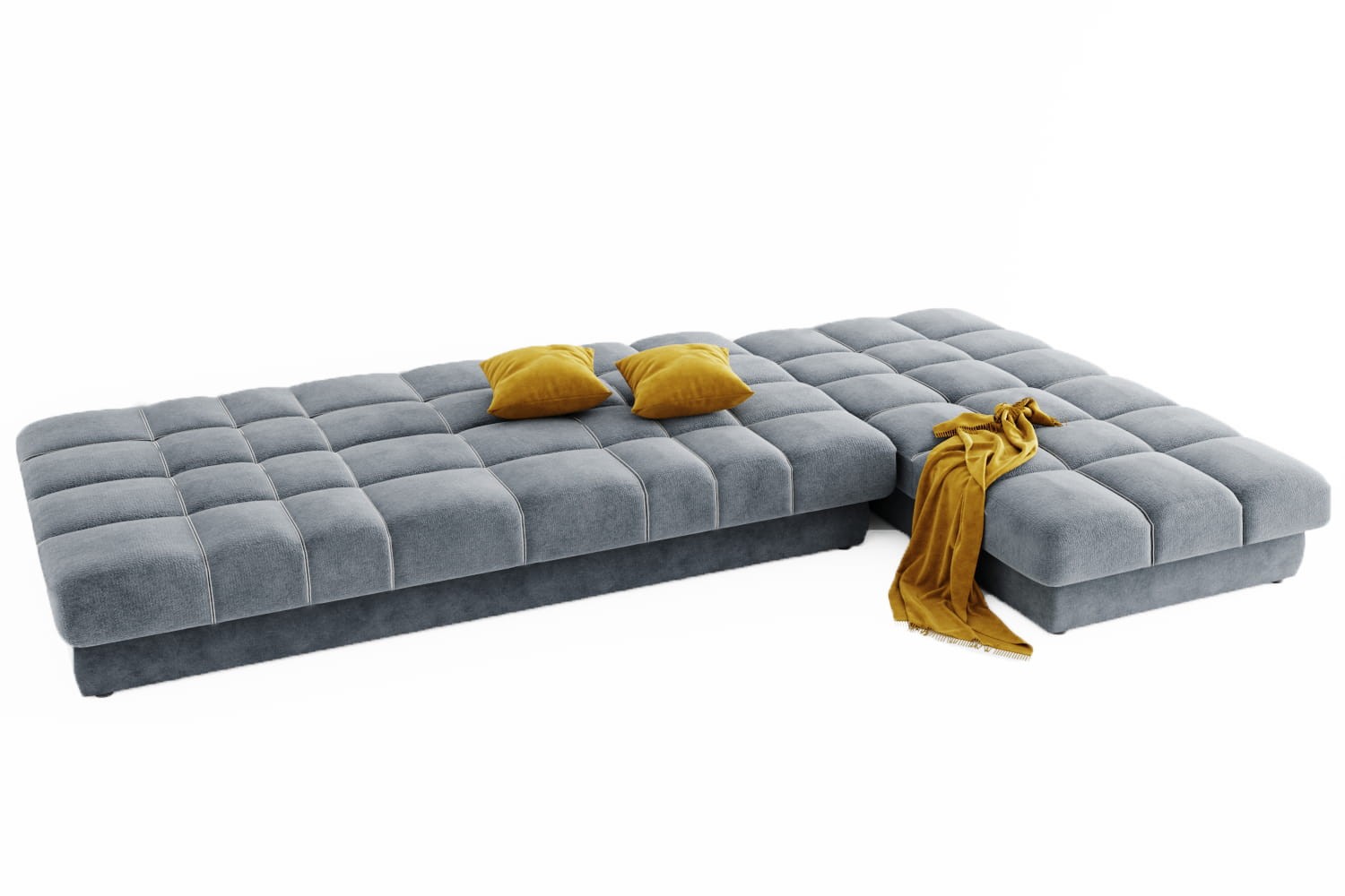 Особенности дивана: Максимальная глубина 1960 мм. Идеальное решение для современной домашней зоны отдыха в минималистичном стиле. Двойная отстрочка шелковыми нитками. 3 положения раскладки: стандартная, релакс, для сна. Изготавливается на ППУ + холкон. Металлический каркас. Ортопедические латы. Вместительный бельевой ящик.